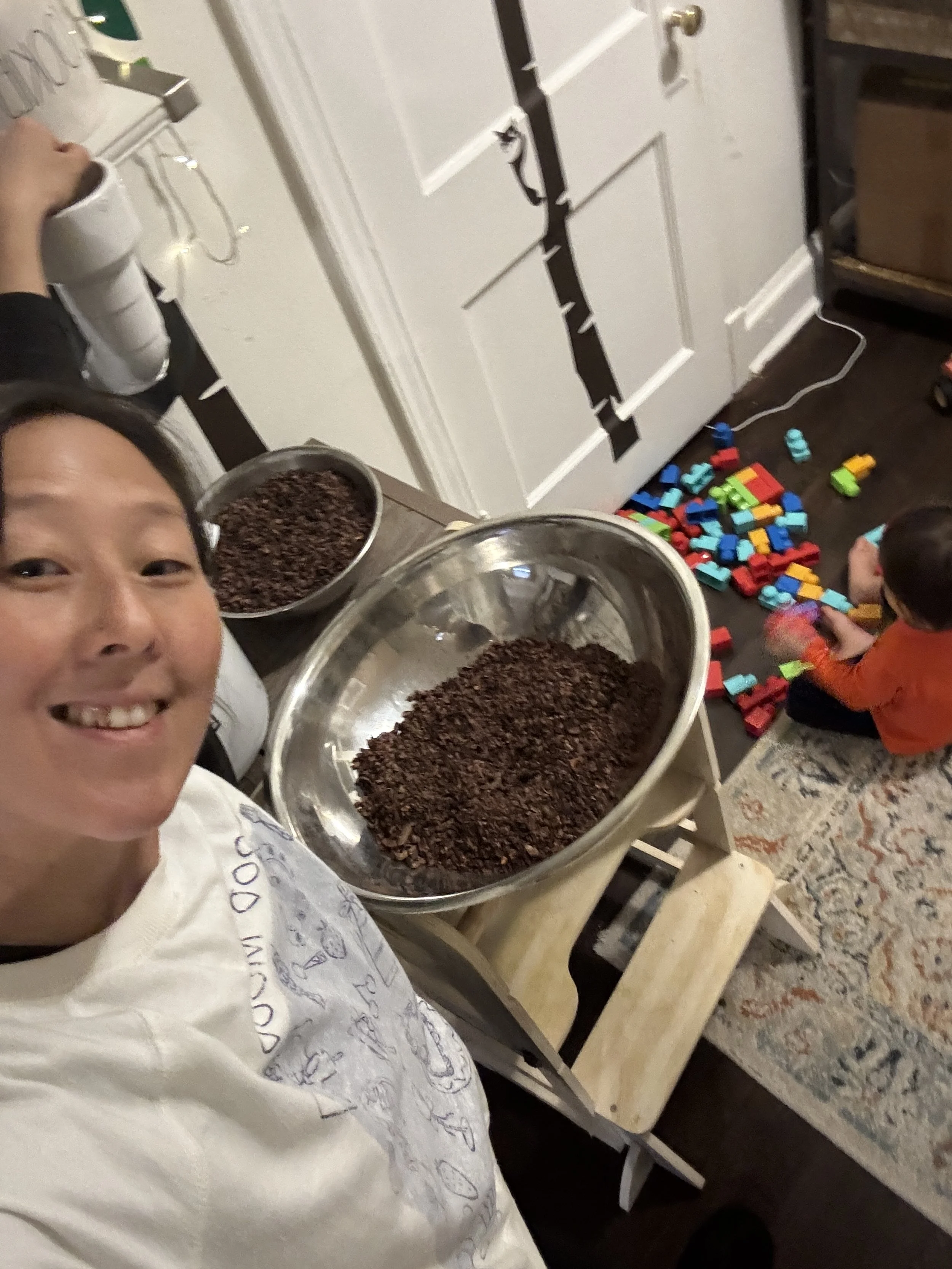 What this mean for me and Secret Cacao Garden. I’m taking a step back from how I normally do things and taking this month off of all commitments except to my family. For me, I had to let go of a lot of things today and really come to terms with what made me feel like I had to do something or that I would disappoint somebody and realize how it felt in my body and once I let those things go, I felt free and I could see the light around the room, getting brighter and my heart softening. I felt like I could truly breathe again and feel like time has slowed down suddenly I didn’t feel a pull of that “I have to do this@ or I should do that.” I did enjoy making a new batch of chocolate with a variety called Peru Marañon, and feel quite content with having this be all for myself and family and friends I feel a shift in my creativity and my brain exploding with ideas again. Now I am a mother 17 months in and I’m starting to get the hang of it. I think I heard 18 months is where it gets very challenging so let’s check in next month! Happy last full moon of the year everyone, may it be as nourishing and transformative as it is for me